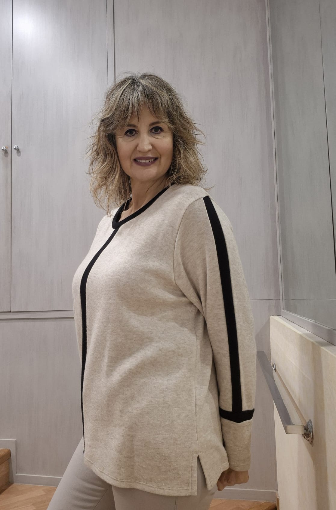 Camiseta de tejido cálido y largo extra. Tallaje generoso. Composición poliester 61%, viscosa 35% y elastano 4%.