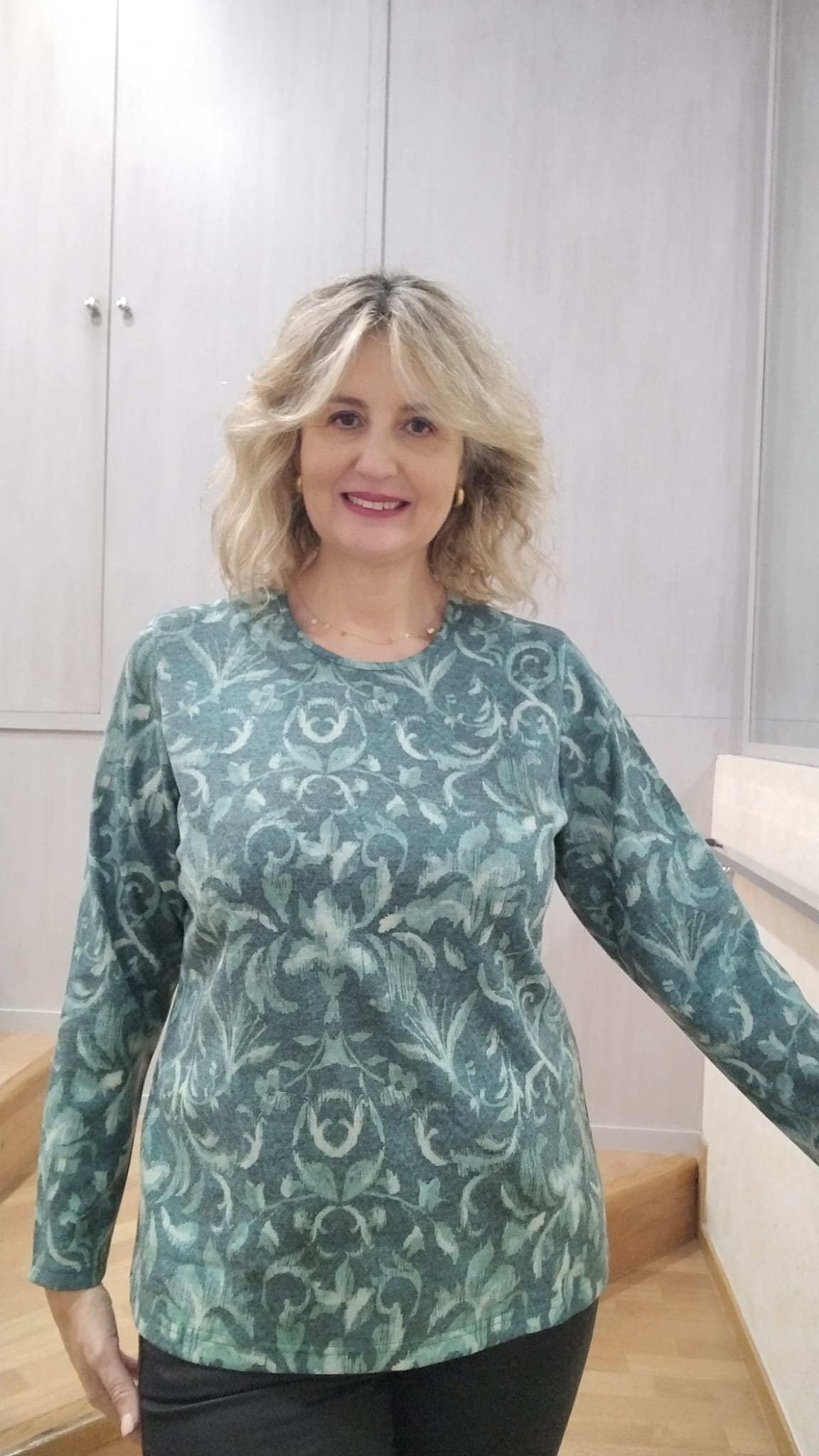 Camiseta cálida con cuello drapeado. Composición poliester 95% y elastano 5%.