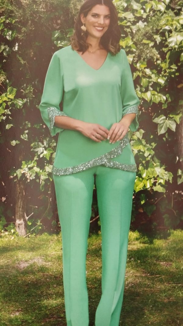 Conjunto de pantalón de tela muy caída, blusón muy largo. disponible en fuxcia y azulón. Composición poliester 100%.