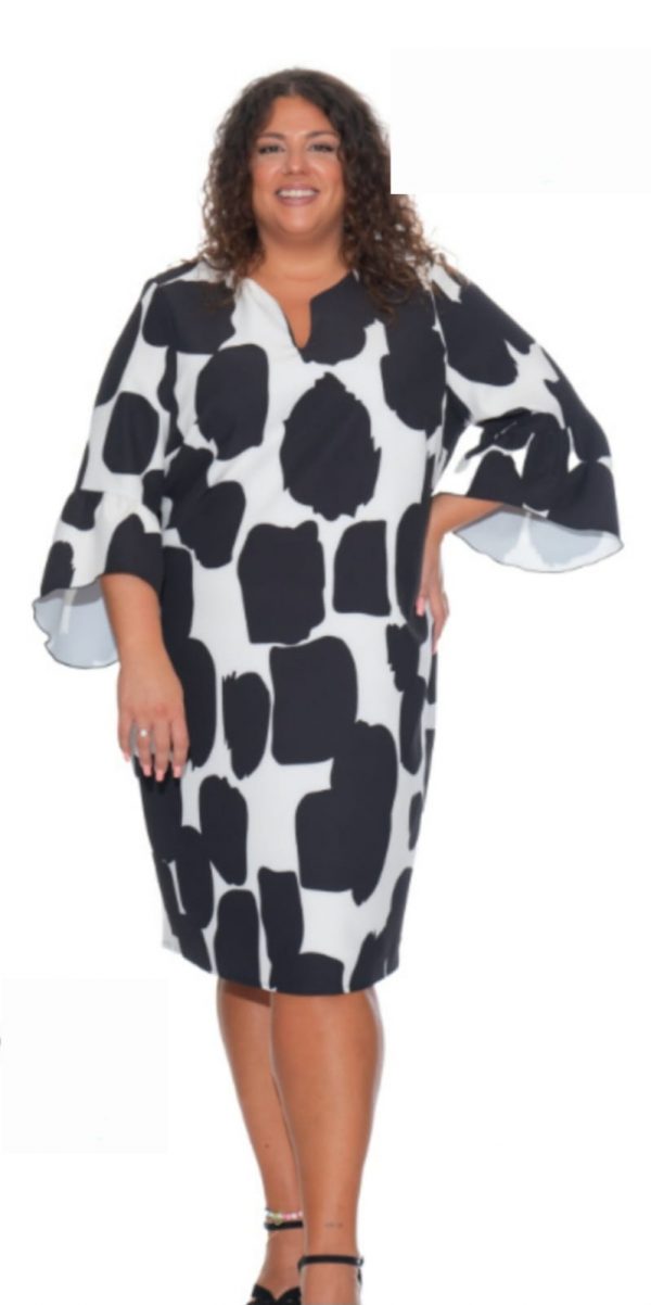Vestido de corte recto y tallaje generoso. Composición poliester 97% y spandex 3%.