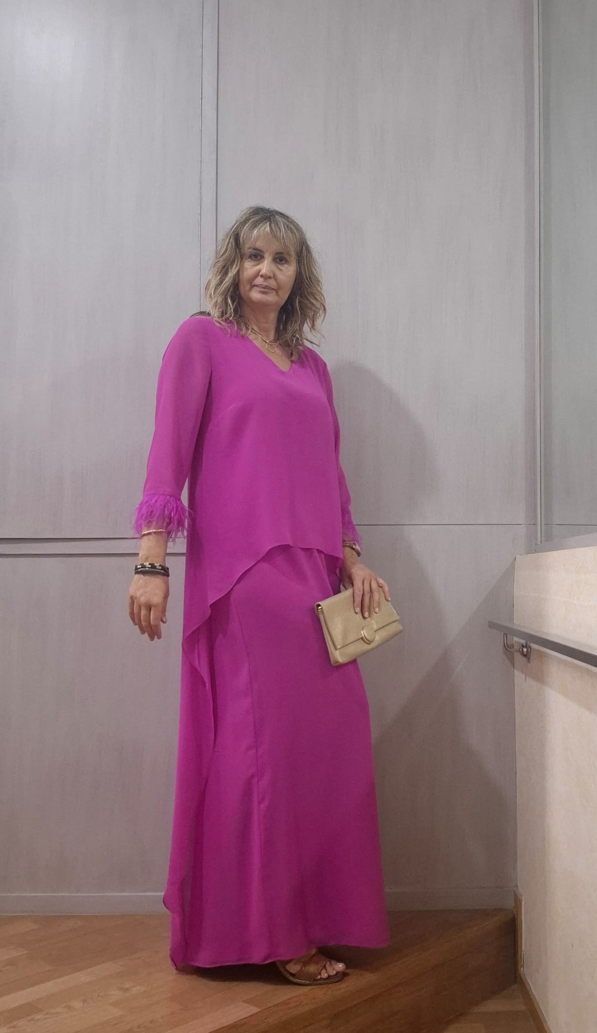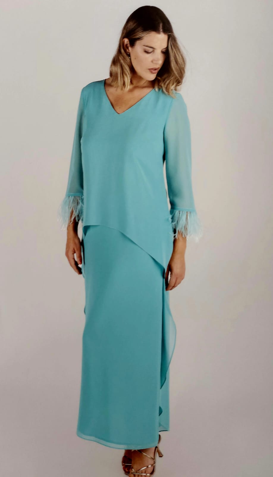 Vestido de gasa doble capa. Ligero. Composición poliester 100%. Es largo.