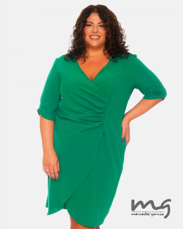 Vestido de crépe con drapeado a la cintura. Composición poliester 97% y spandes 3%.