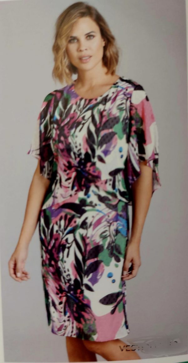 Vestido de gasa con capa delantera. Composición poliester 100%.