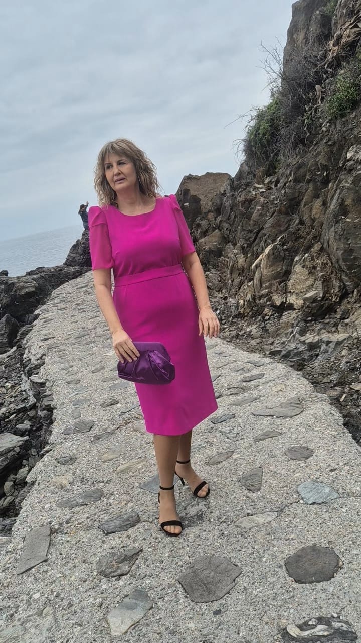 Vestido midi con manga abullonada. Composición poliester 100%.